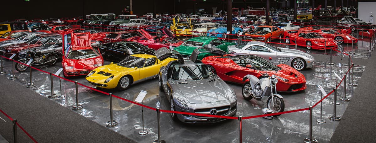 Cars within the collection include an extensive range of classic and vintage cars and motorcycles such as European, Australian and American classic cars, featuring Ferraris, Aston Martins, Porsches, Fords and Holdens.