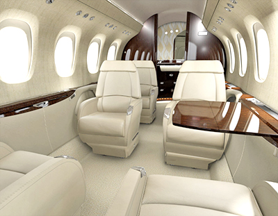 The Cessna Citation Latitude's spacious cabin features legroom and storage space to accommodate long business trips for up to nine passengers. Passengers can stay connected on board with standard Wi-Fi and cabin comfort is managed by touch screen controls.